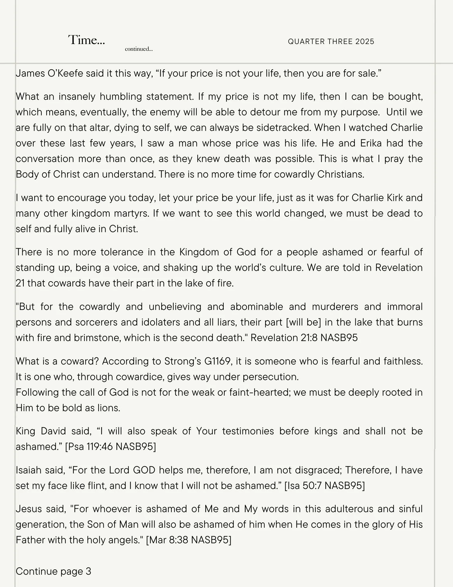 Over the years the fear of God has been replaced by the fear of man… corrupt church government, fear of offending and not getting the money for the next big ‘self-driven’ project or campaign, national government – can’t lose those 501C3’s so we better adjust to the worlds culture, people pleasing and so much more.