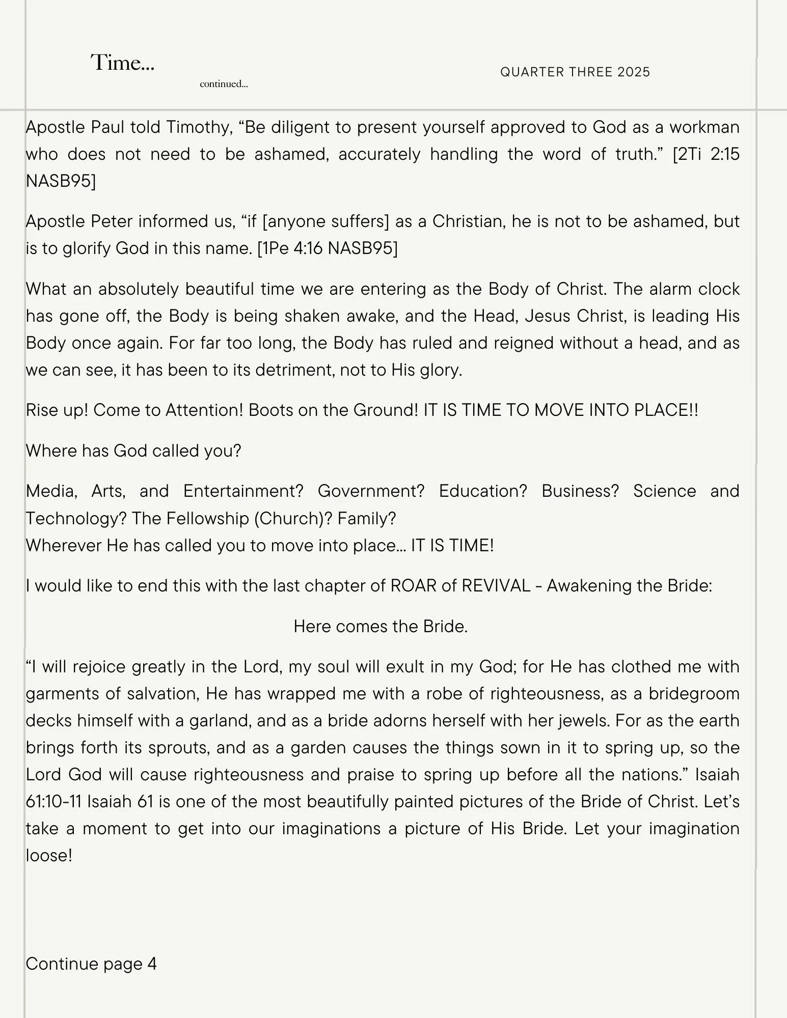 “I am raising up those with the anointing of Joshua. They will lead My body into the new things I have spoken to them.”